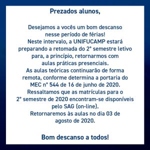 UNIFUCAMP DESEJA BOAS FÉRIAS AOS ALUNOS.