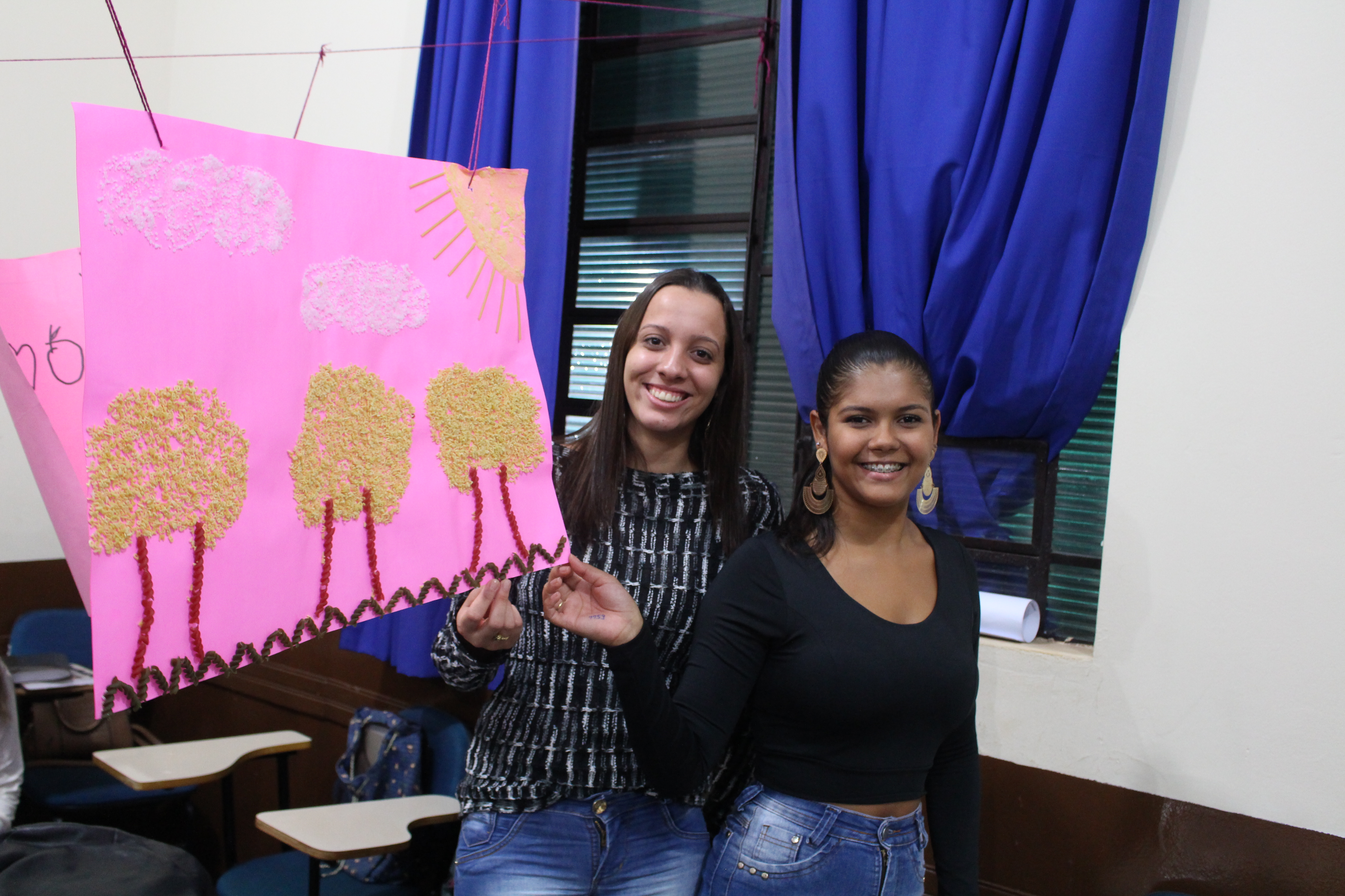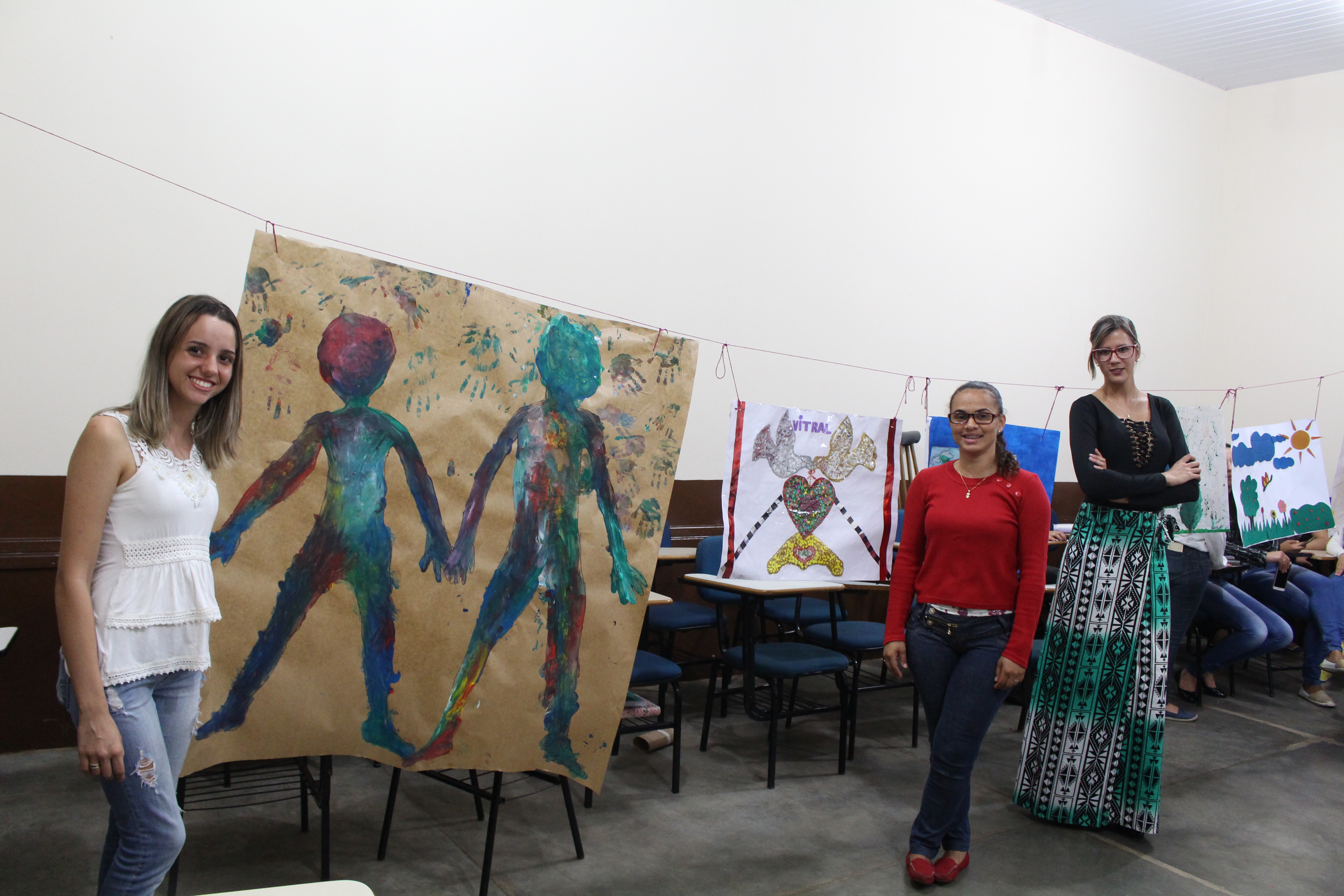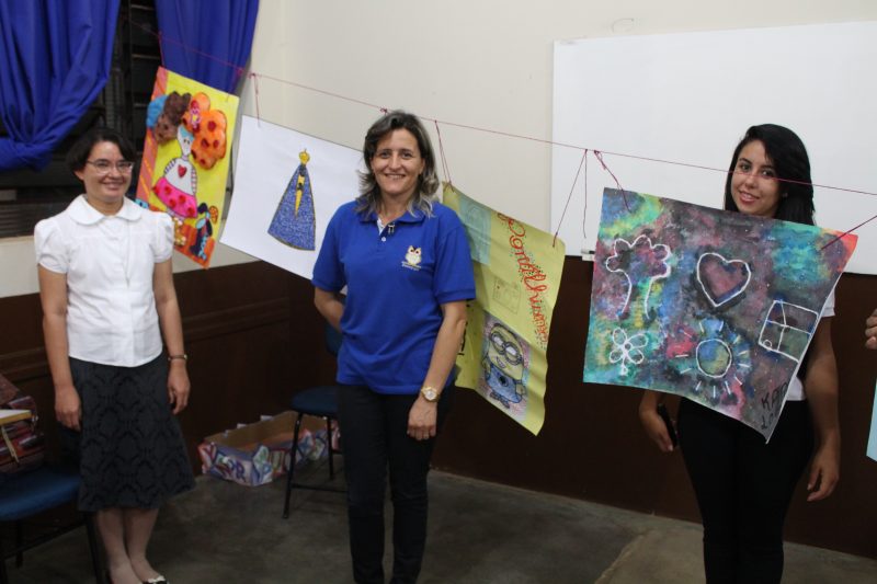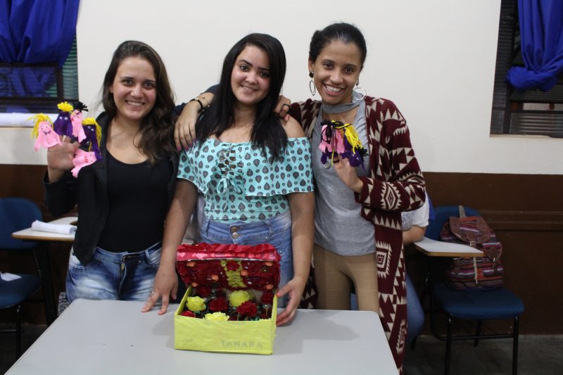 Os universitários fizeram trabalhos de artes visuais, que primaram pelo desenho, pintura, recortes, colagens, tramas de papel, dedoches dentre outros. “O colorido chama a atenção do aluno e media a aprendizagem significativa”; ressalta a professora.